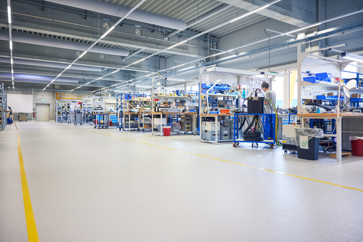 Nachher: wandlungsfähiger Neubau – Produktionshalle und Büros mit einer Nutzfläche von 6.000 m². Ausbaufähige Planung: Die Produktionshalle kann in einem zweiten Bauschritt erweitert werden. „Innere Werte“: offene Hallen und Büros auf zwei Stockwerken. Funktionales Bürokonzept: nur ein Raum pro Stockwerk. Die einzelnen Bereiche entstehen erst durch die Einrichtung. Dadurch ist nichts in Stein gemeißelt, sondern die Räumlichkeiten sind jederzeit leicht und kostensparend adaptierbar. Mehrwert des Bürokonzeptes: kurze Kommunikationswege, flexible Zusammenarbeit, Team-Building inkludiert. Auf dem Prüfstand: Das Konzept bewährt sich seit bald drei Jahren.